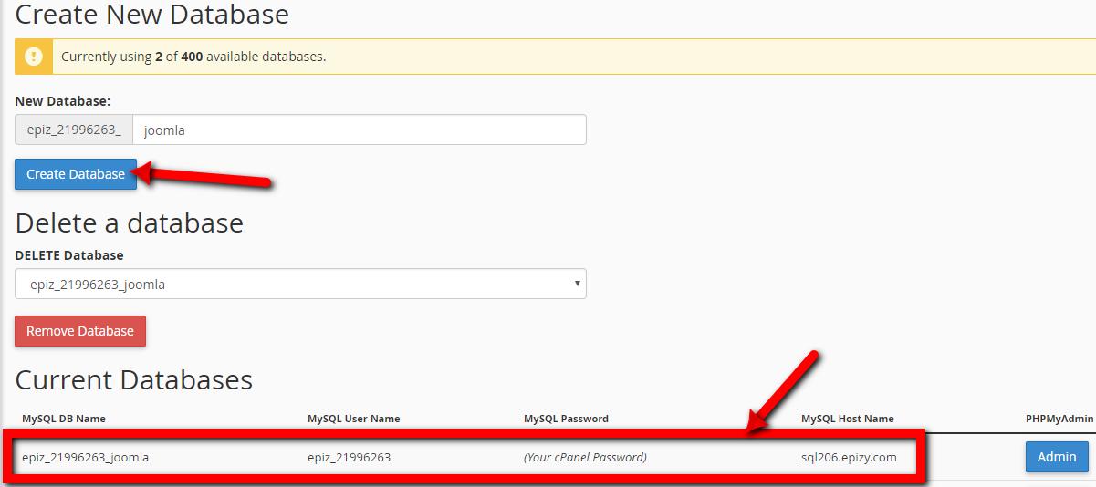 8. قم بالرجوع الى استضافتك تم MySQL DataBase تم قم بانشاء قاعدة بيانات جديدة واضف اليها اسم مستخدم (اذا كانت استضافتك لا تقوم بذلك تلقائيا) تم انسخ معلومات قاعدة البيانات على ملف txt او مسودة ما لانه سنحتاجه لاحقا.