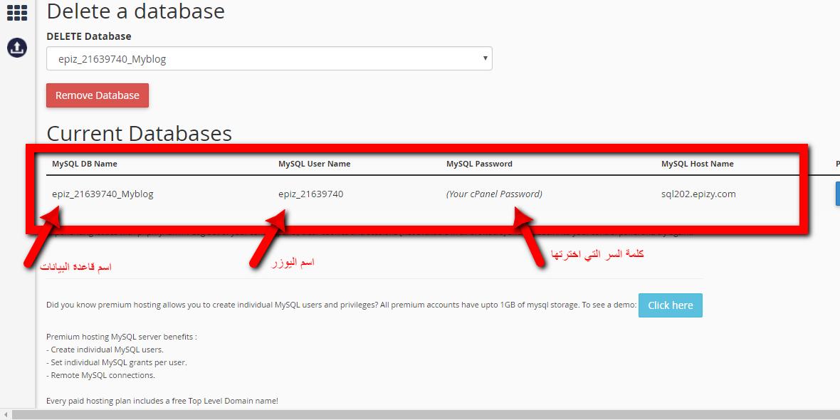 الان ادخل على CPanel الخاصة بك, تم MYSQL Database